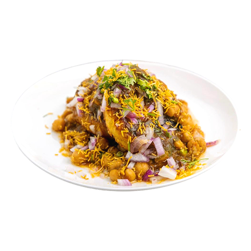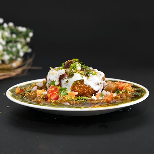 (Aloo tikki served with drizzle of chickpeas gravy, sweet and tangy chutneys )